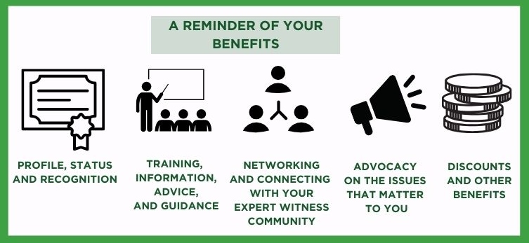 - Advocate on behalf of the Expert Witness community